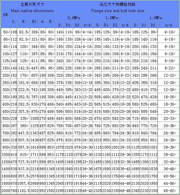 FBGX(D342X)-6/10/16蝸輪傳動軟密封蝶閥主要外形連接尺寸 (單位:mm)